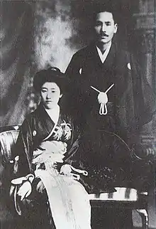Wedding photo of Byakuren Yanagiwara and Denemon Itō (March 1911)