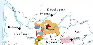Later this area became part of the Haut Pays Bordelais or upper Bordeaux wine country, and its exports were handled by merchants based in the Chartrons district of the city of Bordeaux, just like the wines produced closer to the city of Bordeaux itself. This was a golden age, which ended when use of the Bordeaux appellation was restricted to wines from the Gironde department in the 1930s.