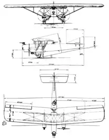 Aft of the CPA 1's semi-cylindrical nose there was a cabin about 5 m (16 ft) long for the observer. It had a forward facing window and a frame that could hold forty 10 kg (22 lb) or ten 50 kg (110 lb) bombs, deployed through ventral openings. It also had an open gun position in the nose and was equipped for vertical and oblique photography. The pilot's cockpit was under the wing trailing edge with a rear-gunner's position close behind, equipped with demountable dual controls, upward-firing machine guns on a flexible mount and a ventral hatch for another gun-mounting covering the lower rear field of fire.[1]
