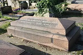 He is buried in Kensal Green Cemetery north-west of the main chapel.