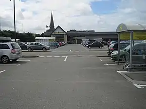 On 5 January 1970, Caernarvon was closed to all services.[4] However following a fire that destroyed the Britannia Bridge over the Menai Straits on 23 May 1970, the branch and goods yard were temporarily reopened for freight traffic until 30 January 1972. The branch line to Caernarvon station was finally closed with the resumption of rail services to Anglesey and Holyhead in February 1972. The track was removed and the station completely demolished. A Morrisons store now occupies the site,[6] having been built under Safeway in the late 80's and opened by the mayor of Caernarfon, and then absorbed into Morrisons after they acquired Safeway in 2004.