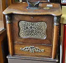 The business had its inception in 1893, when Auguste Arthur Caille, often referred to as A. Arthur, at age 30 founded the Caille Company and began operations in the city of Saginaw, Michigan, where he maintained headquarters until 1896.[3][9] The Caille Company was incorporated under the laws of the state of Michigan in 1901,[3] when A. Arthur partnered with his older brother, Adolph Arthur Caille, and they relocated to Detroit, Michigan and laid the foundation for the Caille Bros. Manufacturing Company.[10] Their initial operations were based on a capital stock of three hundred thousand dollars,[3] which when adjusting for inflation, is about $8.5 million today. Both brothers were practical mechanics and skilled artisans, as both demonstrated a distinctive ability for the invention of mechanical devices.[3] The original factory in Detroit was a modest one and located at the corner of Woodward and Baltimore Avenues,[3] but later relocated when the Caille brothers took over the former Vanderbilt Match Co. factory on Second Avenue near Amsterdam Street in 1904. Located at 1300-1350 Second Avenue,[11] they established the Caille Brothers Building - the fine, modern plant utilized by the company as their world headquarters[11] until the business was sold in 1932.[8] The Caille Bros. headquarters was constructed of brick and stone, and the main building, one hundred and twenty by three hundred and fifty feet in dimensions, was three stories tall, not including the basement.[3] The factory proper, a single story, sat at the rear of the main building.[3] By 1904, they had become the largest employer in Detroit, Michigan.[12] The automobile industry, which started growing a few years later acquired a lot of employees from the Caille Bros. It was their coin-slot devices that ultimately led to the establishment of penny arcades, places where various coin operated machines could be played. The enormous sales volume of the coin slot machines produced by the Caille Bros. Manufacturing Company testify to their distinctive merit of having produced slot machines of the highest quality and design in their day, earning the Caille Bros. a reputation as the "Rolls-Royce" of floor machines.[8] They would eventually expand their product line to include other items such as marine motors, scales, and the conveyor belts used in grocery stores.[5][9][13][14][10] The Caille Bros. Manufacturing Company maintained branch offices in New York, Chicago and Paris.[10] The stock of the company was virtually controlled by the Caille brothers, of whom A. Arthur Caille served as president and General Manager, and Adolph A., vice-president and Secretary.[3][9][10] The former had the general supervision of the finance and sales departments of the business, and the latter had charge of the manufacturing and the directing of the general accounting and office affairs.[3]