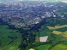 The 18th–19th-century weaving village of Maxwellton survives as the western part of the Calderwood neighbourhood. Once a rural community, it was the main area of settlement in the Barony lands of the ancient Calderwood Estate, where from 1400 until about 1900, the Maxwells of Calderwood were the main landed family.[29][30][31] Maxwellton became prominent locally and nationally from the 1960s onwards, when a dispute broke out between residents and the East Kilbride Development Corporation, which sought to condemn the settlement as a slum and demolish it to make way for part of the East Kilbride new town development.[32][33][34][35] The Burgh Council of East Kilbride sided with the villagers, and with backing from the National Trust For Scotland, the campaign over subsequent years saved most of the village on historic, architectural and aesthetic grounds.[36][37] Maxwellton village then joined the early statutory conservation areas in Scotland, after nearby Eaglesham in 1968.[38]