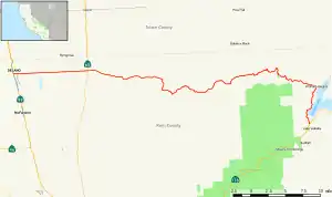 ![]() Map of Kern County in south central California with SR 155 highlighted in red | ||||