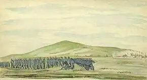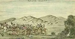 - Battle of San Pasqual, 6 December 1846. US Cavalry General Stephen Kearny's dragoons, after a grueling journey across New Mexico and the Mojave Desert, cross into California with about 100 men and are joined by Kit Carson's 20 scouts and about 40 men under Gillespie north of San Diego. In a poorly thought out and uncoordinated attack with wet powder and worn out mules Kearny loses about 19 of his men in a fight with about 150 Californio lancers led by Andrés Pico—brother of Pio Pico. Californio casualties are unknown. By the time reinforcements came from U.S. forces in San Diego, the Californio forces were already gone.[29]