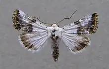 The wingspan is 26–31 mm. Adults are on wing from April to June and again from July September in two generations per year.