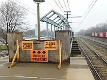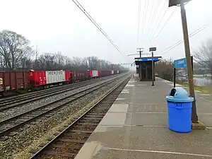 Calumet is a station on Metra's Metra Electric Line located in East Hazel Crest, Illinois. The station is officially located at Park Avenue and 174th Street, near the Calumet Country Club, however the actual location is on Wood Street south of 174th Street. Park Avenue terminates at 171st Street. Calumet is 22.8 miles (36.7 km) from Millennium Station, the northern terminus of the Metra Electric Line.[2] In Metra's zone-based fare system, Calumet is located in zone E. As of 2018, Calumet is the 46th busiest of Metra's 236 non-downtown stations, with an average of 1,077 weekday boardings.[1] The station is on a solid-fill elevated structure and consists of one island platform which serves the Metra Electric Line's two tracks. There is no agent at Calumet, but tickets may be purchased from a vending machine in the waiting room.
