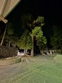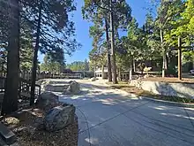 Near Entrance to Dining Facilities, Library, Auditorium, Study Center, and Volleyball Courts in September 2023. Notice the Alpine fir trees which grace the campus and the administration has recently undertaken to preserve & protect.