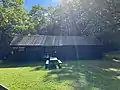 Camp Caribou Outdoor Picnic Tables near the main dining lodge
