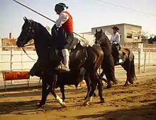 Campinos work on horse-back, using a long pole (a pampilho or lance) to manage and direct the herd.