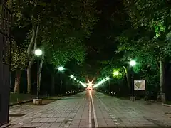 The Campo Grande (English: "Large Field") is a large public park located in the heart of the city of Valladolid, Spain. It is triangular, has a 115,000 (11.5 ha) surface and is bordered by the streets Acera de Recoletos, Paseo de los Filipinos and Paseo de Zorrilla.[1] Its main entrance is at Plaza de Zorrilla, where together with a modern bill gate lies a floral shield of the city. The park is enclosed around its perimeter by a simple fence that runs between pillars, with entrances on all sides.