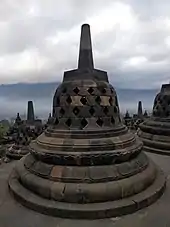 - ↑ "Stupa adalah lambang dari agama Buddha yang berbentuk mangkuk terbalik, dengan bentuk persegi empat dan atau segi delapan (harmika)". Balai Konservasi Borobudur (in Indonesian). 2018-02-22. Retrieved 2021-07-21.