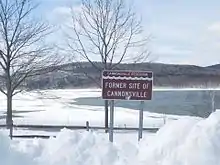Cannonsville was a town in Delaware County in Upstate New York. The town was founded in the late 18th century and survived until 1964, when it was flooded to create the Cannonsville Reservoir, which is part of the Delaware System and provides water to New York City. Its site is located in the present-day town of Tompkins. Cannonsville was named after Benjamin Cannon, Sr. He is alternately credited with building the town's first house, and being its first Postmaster.