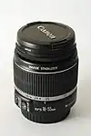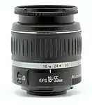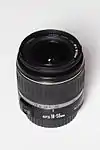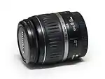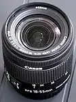 The Canon EF-S 18–55mm lens f/3.5–5.6 is a Canon-produced wide-angle to mid telephoto zoom lens for digital single-lens reflex cameras with an EF-S lens mount. The field of view has a 35 mm equivalent focal length of 28.8–88mm, and it is a standard kit lens on Canon's consumer APS-C DSLRs. In February 2017 Canon announced the new Canon EF-S 18–55mm lens f/4–5.6 IS STM with a smaller aperture, which made the lens 20% smaller according to Canon.