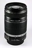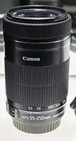The Canon EF-S 55–250mm f/4–5.6 IS lenses are a series of telephoto zoom lenses for Canon EOS digital single-lens reflex cameras with a Canon EF-S lens mount.[1][2]