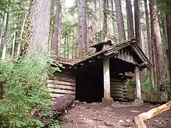 The Canyon Creek Shelter, also known as the Sol Duc Falls Shelter, is a rustic trail shelter in Olympic National Park. It is the last remaining trail shelter built in the park by the Civilian Conservation Corps (CCC) from Camp Elwha. The shelter was built in 1939, shortly after Olympic National Park was established from the U.S. Forest Service-administered Mount Olympus National Monument. Two similar shelters were built at Moose Lake and Hoh Lake, neither of which survive. The one-story log structure is T-shaped, with a projecting front porch crowned by a small cupola. The shelter is open to the front porch.[2]