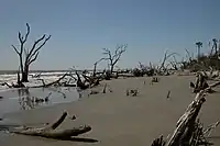 Bulls Island is at 4,900 acres (20 km2) the largest of the barrier islands that are part of the refuge.[1] A regular ferry service to Bulls Island is provided by a private charter service at Garris Landing. The Island was the site of a third lighthouse, Bulls Bay Light which was deactivated in 1913 and lost to the sea years ago. The island also has Boneyard Beach, a beach where a forest has been encroached on by the sea.[2]
