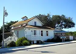 In 1910, Capt Sewall and his wife Abbie (Evans) Sewall built a larger house higher up on the property and in 1913 the 1889 house was moved by barge across the St. Lucie River to a waterfront lot on what is now Old St. Lucie Boulevard in Port Sewall (now part of Stuart), where it stood until being moved by barge to Indian RiverSide Park in 2007.[4] During its stay in Port Sewall the present small rectangular cupola was added to the roof of the house. During Prohibition, green or red lanterns were hung in the cupola to signal incoming bootleggers whether it was safe or not for them to offload their cargoes of alcohol.[5]