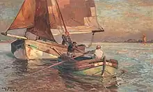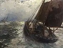 He was awarded gold medals at the International Art Exhibition of 1894, in Vienna, and the Große Berliner Kunstausstellung of 1896. Three years later, he was one of the co-founders of the Düsseldorfer Künstler-Vereinigung (artists' association). After the turn of the century, marine painting was heavily promoted by Kaiser Wilhelm II, who was attempting to make Germany a major sea power. As a result, the demand for Becker's paintings increased farther inland.