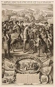 French engraving from 1707 depicting Saxon soldiers surrendering to Rehnskiöld following the battle of Fraustadt.