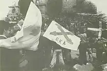 In April 1977, 150 EKA members occupied the Diputación of Navarre in protest against the violation of human rights by the Spanish state.[2] The same year, the government denied the legalization of the party that presented a list to the elections called Agrupación Montejurra.
