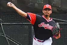 Carlos Luis Carrasco (born March 21, 1987), nicknamed "Cookie", is a Venezuelan-American professional baseball pitcher who is a free agent. He made his Major League Baseball (MLB) debut with the Cleveland Indians in 2009 and has also played for the New York Mets. Listed at 6 feet 4 inches (1.93 m) and 224 pounds (102 kg),[1] he throws and bats right-handed.