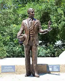 Over the years, Argentina has issued several postal stamps honoring Gardel.[42] In 1976 and again in 2004, Uruguay produced Gardel stamps,[43] with Uruguay calling him the "immortal Tacuaremboan" in the 2004 version.[44] In 1985, on the 50th anniversary of his death, Colombia produced a Gardel stamp which featured the singer and the airplane model that caused his death.[45] On 16 March 2011, the United States Postal Service issued a set of five "Latin Music Legends" stamps including one picturing Carlos Gardel.[46][47]