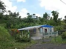 Home in Morovis, Puerto Rico with blue tarp May, 2019
