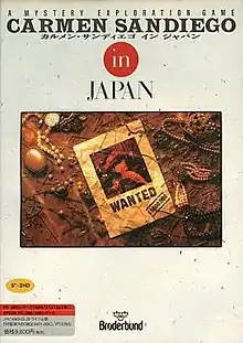 Carmen Sandiego in Japan – Hannin Sagashite Nihon Zenkok (Japanese: カルメン サンディエゴ イン ジャパン) is a 1989 spin-off[2] entry in the Carmen Sandiego franchise. It was developed and published by Broderbund Japan on two floppy disks for the NEC PC-9801 Series 525in.[3][4] The title functions as both an adventure game where players chase and capture Carmen, and an educational game where players learn about geography and history of Japan.[5] The title was released on November 21, 1989,[1] one of the few titles released under the Broderbund Japan brand that year alongside tabletop Shufflepuck Café (June 11) and shooter Wings of Fury (September).[1]