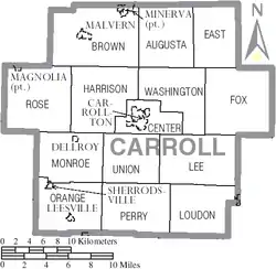 Carroll County was formed on December 25, 1832, from portions of Columbiana, Harrison, Jefferson, Stark, and Tuscarawas counties.[7]