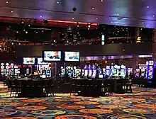 While casino security of the past was nothing more than a "muscle man", today's security is a multimillion-dollar investment that is as complex as a police department.[1] Modern casino security is usually divided between a physical security force, often trained professionals who patrol the casino floor and responds to calls for assistance and reports of criminal and/or suspicious activities, and a specialized surveillance department that operates the casino's closed circuit television system (known in the industry as the eye in the sky) in an effort to detect any misconduct by both guests and employees alike.[2] Both of these specialized casino departments work very closely with each other to ensure the safety of both guests as well as the casino's assets, and have been quite successful in preventing crime.[3] Before video surveillance technology, most casinos had catwalks in the ceiling above the casino floor. The catwalks allowed surveillance personnel to look directly down, through one way glass, on the activities at the tables and/or slot machines.