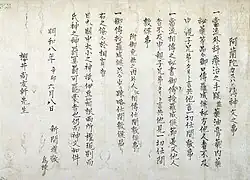 Pledge by a Japanese disciple to his medical teacher to keep the teachings of Caspar about pharmaceutical oils, plasters, etc. absolutely secret. Written by Shinma Michitaka and addressed to his master Sakurai Naotomo in 1771.