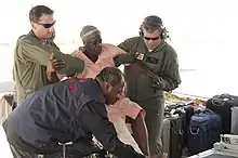 In addition, the government of the United States issued orders for deployment to the U.S. Army's 1st Battalion, 73rd Infantry from Fort Bragg, North Carolina, which is scheduled to deploy along with the aircraft carrier USS Carl Vinson.[39] The U.S. Navy also announced on 13 January 2010 that the hospital ship Comfort and amphibious helicopter carrier Bataan will be deployed to assist in the humanitarian relief efforts.[40] The American government also announced that it would provide $100 million for the aid effort in Haiti.[41] Partners in Health, the largest health care provider in rural Haiti, also provided aid from Port-au-Prince.[42] Despite the domestic and international relief efforts, many Haitians in the initial days after the earthquake did not have access to health care.