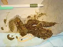 Hairworms are most commonly found as parasites in the gastrointestinal tract in cats, for example capillaria putorii. They are considered to cause little disease, but occasionally cause vomiting and diarrhea and, rarely, peptic ulcer disease with anemia.[6] The eggs of gastrointestinal hairworms are oval, about 60-70 × 35-40 µm in size, and can be detected by flotation techniques.[7]