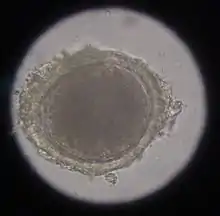 Microscopic image of an egg packet of the cucumber nematode tapeworm.