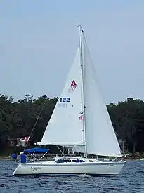 Model with a shoal draft wing keel, giving a draft of 3.5 ft (1.1 m). The SD model has a PHRF racing average handicap of 198 with a high of 192 and low of 204. It has a hull speed of 6.43 kn (11.91 km/h).[1][4][6]