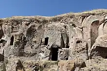 There are about 500–600 caves located in various parts of Ahlat,[1] around 3.6 km (2.2 mi) southwest. Generally, they are situated in two main canyons, at Madavans Creek in Madavansans Canyon, at Harabeşehir Creek in Harabeşehir Canyon,[2] and Sultan Seyit Creek, Kırklar Valley, at Gaban Creek Valley around Yuvadamı village and Harabe Hulik village. The area was declared a first-grade archaeological site. However, the caves are private property. Currently, they are used as storage of potato and food because they remain cool in the summer months and warm in the winter season.[3]