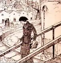An ink drawing of Meireles disembarking in Lisbon, by her first husband, Fernando Correia Dias.