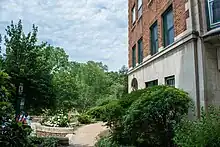 The building once had an unobstructed view of University Circle, but mature trees now block the vista.