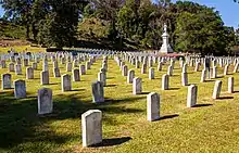 After the American Civil War, a portion of Cedar Hill Cemetery was set aside for the burial of Confederate soldiers who died of sickness or wounds.[3] This burial site was designated Soldiers' Rest and contains the graves of some 5,000 Confederate soldiers, with 1,600 identified.[3]