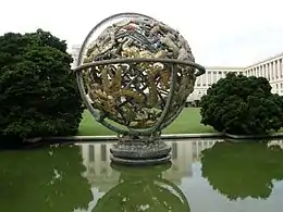 The grounds of the Palais des Nations (seat of the United Nations Office at Geneva) contain many fine objects donated by member states of the United Nations, private sponsors and artists. The Celestial Sphere (also known as the Armillary Sphere) in the Ariana Park of the Palais des Nations is the best-known of these. The huge - over four meter diameter - Celestial Sphere is the chef d'oeuvre of the American sculptor Paul Manship (1885–1966). It was donated in 1939 by the Woodrow Wilson Foundation to what was then the League of Nations building. Known also as the Woodrow Wilson Memorial Sphere of the Palais des Nations it is today a symbol of Geneva International and of Geneva as the centre of dialogue and peace.