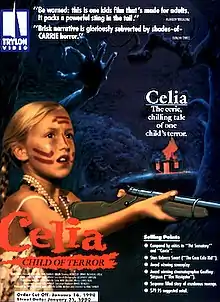 Celia was released on VHS in the United States by Trylon Video in December 1989 as Celia: Child of Terror.[12][13] It was later issued on DVD by Second Run on 30 March 2009, and subsequently released on DVD by Scorpion Releasing on 26 February 2013.[14] In Australia, Celia was released on DVD by Umbrella Entertainment in 2018 as a double set with the 1988 Australian film The Tale of Ruby Rose.