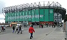 In summer 2015, the exterior of the stadium was adorned with a display of printed banners which will remain permanently.[58] Fifteen green-coloured sections at either end of the stadium – each 21 metres high – form a display which reads 'Paradise' and depicts images of noted players from throughout the club's history (58 players in total, with a different set shown on each stand). Photographic banners of significant events and trophy wins are displayed on further panels at the corners between the main stand and the end stands. The project was controlled by the Frame agency with design input from Coatbridge-based artist Jim Scullion.[59][58]