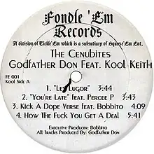 The Cenobites LP is the eponymous debut album by the American hip hop duo the Cenobites, composed of rapper Kool Keith and producer Godfather Don. It was first released as an EP in 1995 via Fondle 'Em Records and was later expanded for LP in 1997 and CD in 2000. Percee P and Bobbito Garcia made guest appearances on the record.