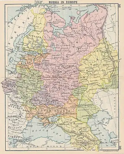 Saratov was one of the areas of where the communal system was dominant. Prime Minister Stolypin, who had been Marshal of the Kovno Nobility for thirteen years from 1889, was struck by the differences in peasant living standards and wealth between the Kovno region and Saratov Province where he was Governor from 1903. Stolypin whose wife O. B. Neidgardt owned an estate in Kovno Province, a Polish-Lithuanian province where the communal system had never been in place, where peasants owned farms privately, and with farming techniques like those in use in the neighbouring Kingdom of Prussia which were vastly superior to those used by communal tenures in Central Russia. Saratov Province on the other hand, albeit rich in land, was under the communal system, and its peasants were among the poorest and most rebellious in the entire Empire.[12] Saratov was also the site of the most destruction of gentry property during the Russian peasant uprising of 1905–6, and it was from these events and this province Stolypin got his conviction confirmed, and which brought him to St. Petersburg with his agrarian reform whose cornerstone was the abolishing of the communal system and the establishing of a peasant landowning class.[12] His reforms were resisted by the nobility, unionised as the United Nobility, and commune elders, which tended to be reactionary and dominant, resisting modernisation, and conflict arose between those wanting to separate and become private landowners and the communes; this can be seen in the life of Sergey Semyonov and his struggle against the commune elder Maliutin.[13] Most peasants of Central Russia and the Central Agricultural Region, the communal area to which Stolypin's reforms had been addressed, were not affected, and the reform failed to alter the communal way of life.[14]