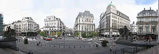 Formerly named the Boulevard du Hainaut/Henegouwenlaan,[3] the Boulevard Maurice Lemonnier/Maurice Lemonnierlaan stretches from the Boulevard du Midi/Zuidlaan to the Place Fontainas/Fontainasplein. Interrupted halfway by the Place Anneessens/Anneessensplein (former location of the Old Market), this artery is characterised by a homogeneous succession of low-rise buildings for the most part, bourgeois dwellings with a predilection for the neoclassical style, apartment buildings, and commercial buildings such as the Midi Palace.[18][5][19] In 1919, the city council ordered the boulevard to be renamed in honour of the alderman and patriot Maurice Lemonnier (1860–1930), who returned from a long captivity as a prisoner in Germany during World War I.[19] Some remarkable buildings along this relatively well-preserved stretch include the Midi Palace, the Model School (currently Charles Buls Primary School), the former Municipal School no. 13 (currently the Haute École Francisco Ferrer) on the Place Anneessens,[19] as well as the old Castellani rotunda (now transformed into a parking lot).[20][18]