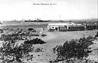 On 11 November 1888, a line 70 km long between Trelew and the quay in Puerto Madryn was opened. It included the first telephone line of the region. Journey time (that were made on horseback) reduced from 20 hours to only 2 hours in train.[2] From Trelew the line was extended 50 km to Gaiman on 31 December 1908 and from there to Dolavon on 12 October 1915. In 1910 a 450-mt. length dock was opened in Puerto Madryn. The railway station would be opened three years after.[3]