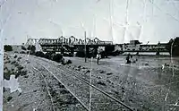 In October 1884, Law No. 1539 that allowed company to build the line, was promulgated. Works began in 1886, directed by engineer Jones Williams, in both cities simultaneously, Puerto Madryn and Trelew. Apart from the local workers, several groups of immigrants were brought from Italy, Spain, Syria, Wales among other countries on the Vesta ship.[1]