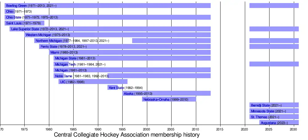 - ↑ Bowling Green was previously a member of the CCHA from 1971 to 2013.