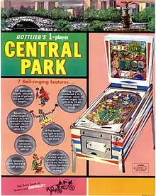 Central Park is a pinball machine that was released by Gottlieb in 1966. The game was sold in 3,100 units. It was designed by Ed Krynski and the art was done by Roy Parker.[1]